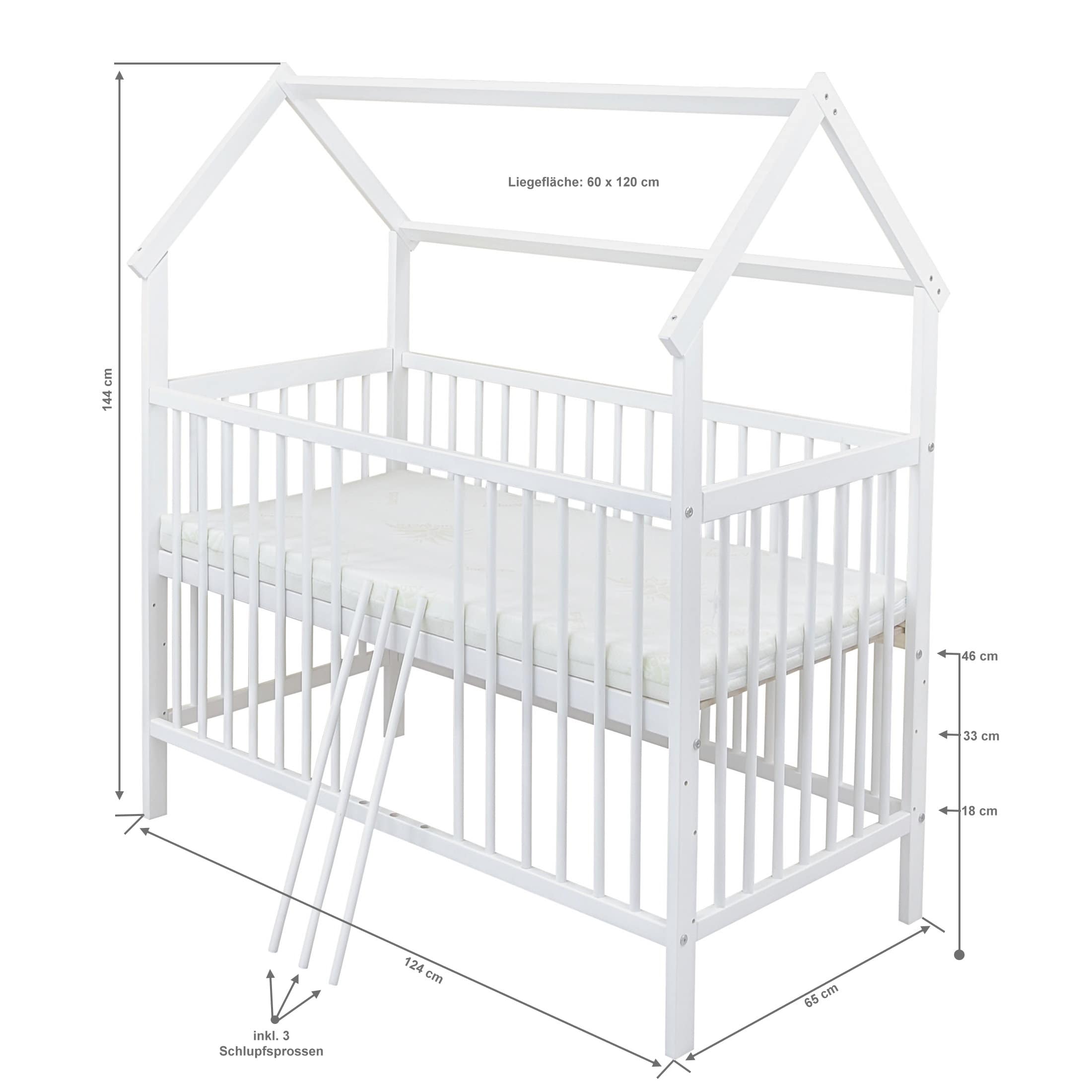 Babybett Hausbett 60×120 cm weiß 2in1 mit Schutzgitter