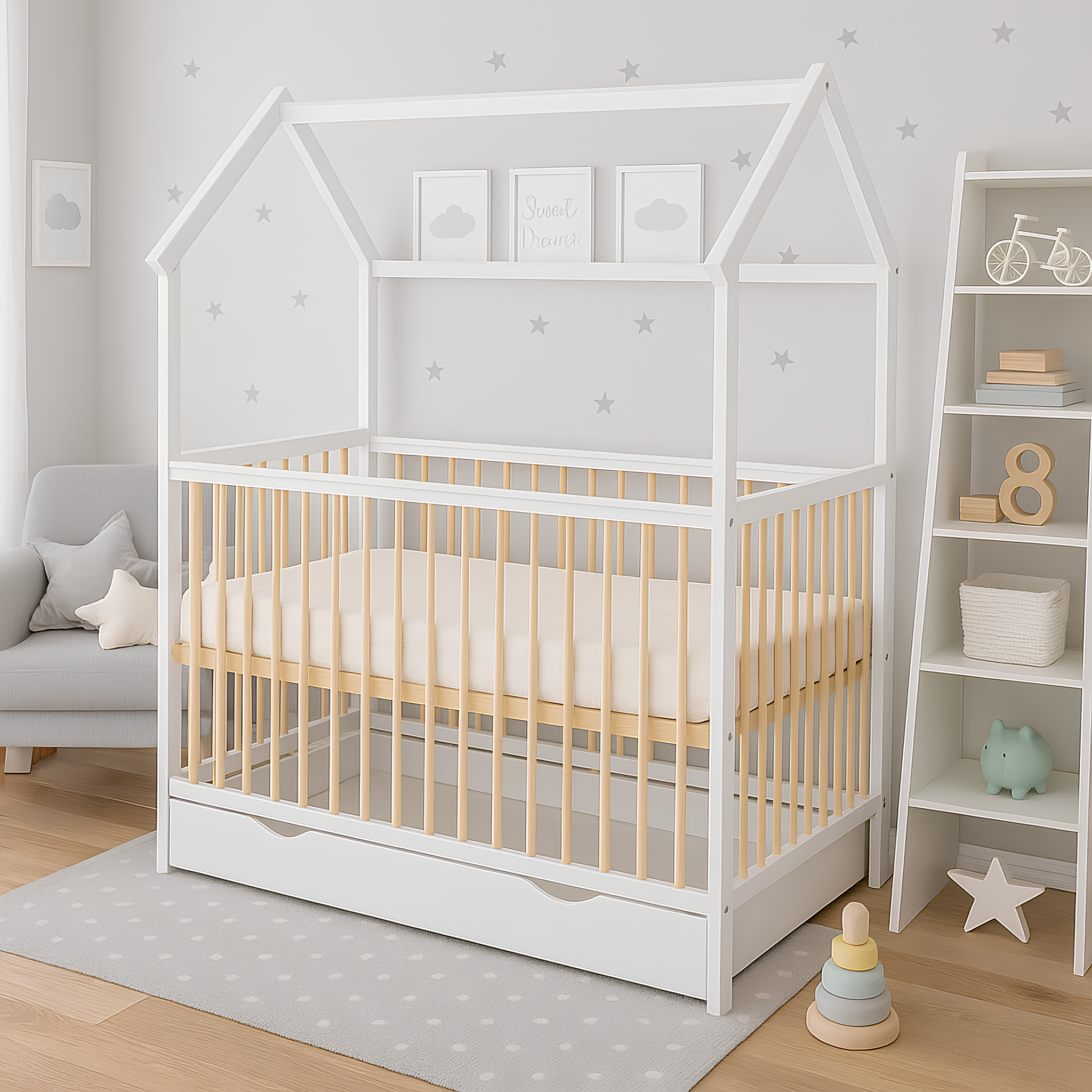 Dieses Baby Hausbett mit Schublade vereint Sicherheit, Langlebigkeit und modernes Design. Es ist nicht nur ein funktionales Möbelstück, sondern auch ein echter Hingucker im Kinderzimmer. Ob als klassisches Babybett weiß oder später als dekoriertes Kinderbett Hausbett mit Dach – hier fühlt sich Ihr Kind geborgen und wohl.