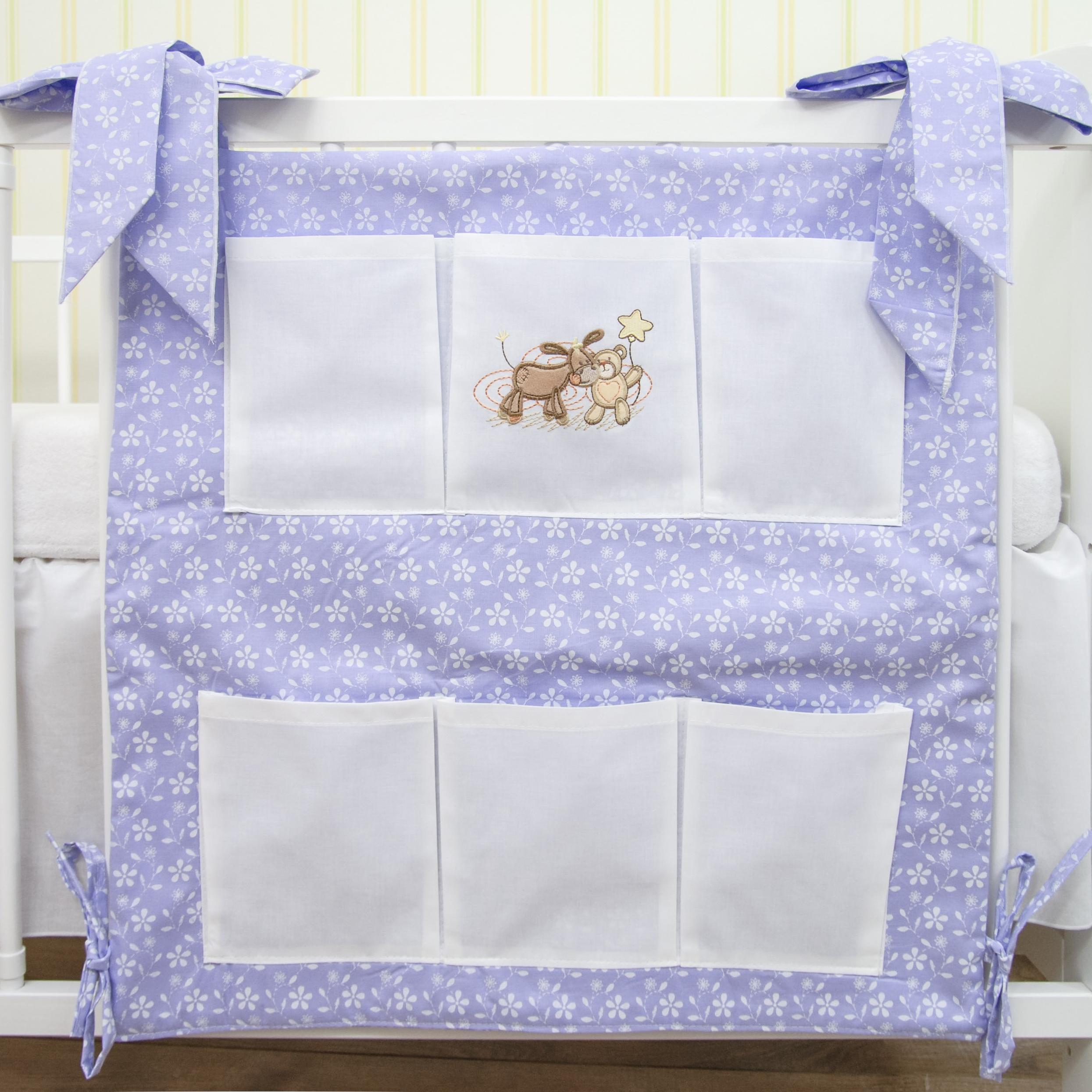 Babybett Organizer Betttasche Esel Blümchen lila
