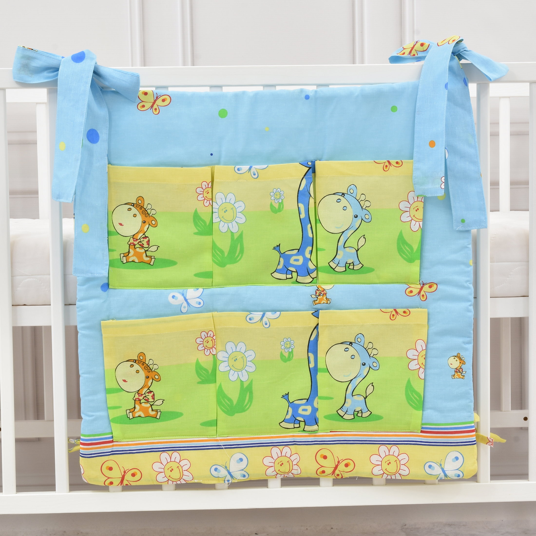 Babybett Organizer Betttasche Giraffe blau gelb