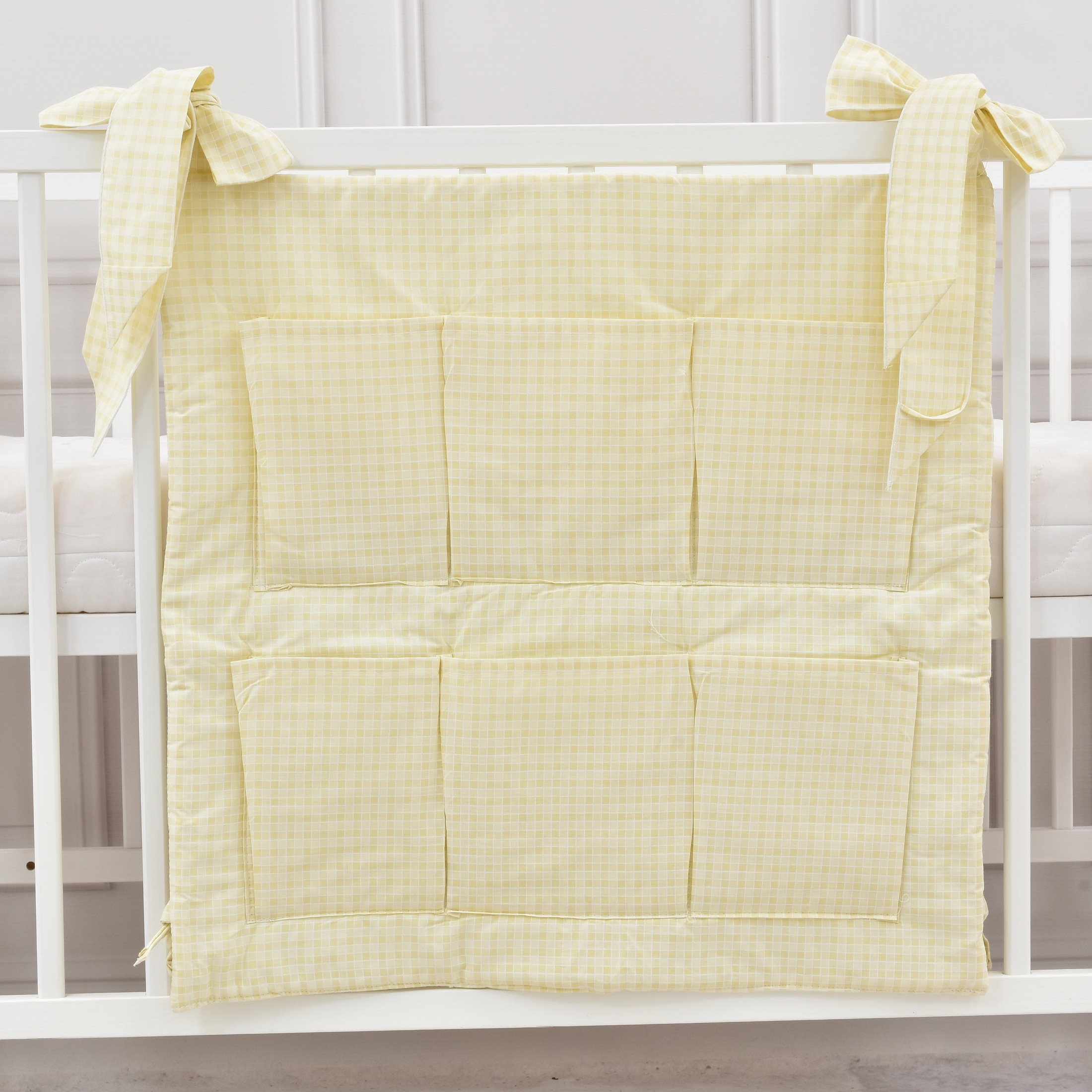 Babybett Organizer Betttasche Karro beige