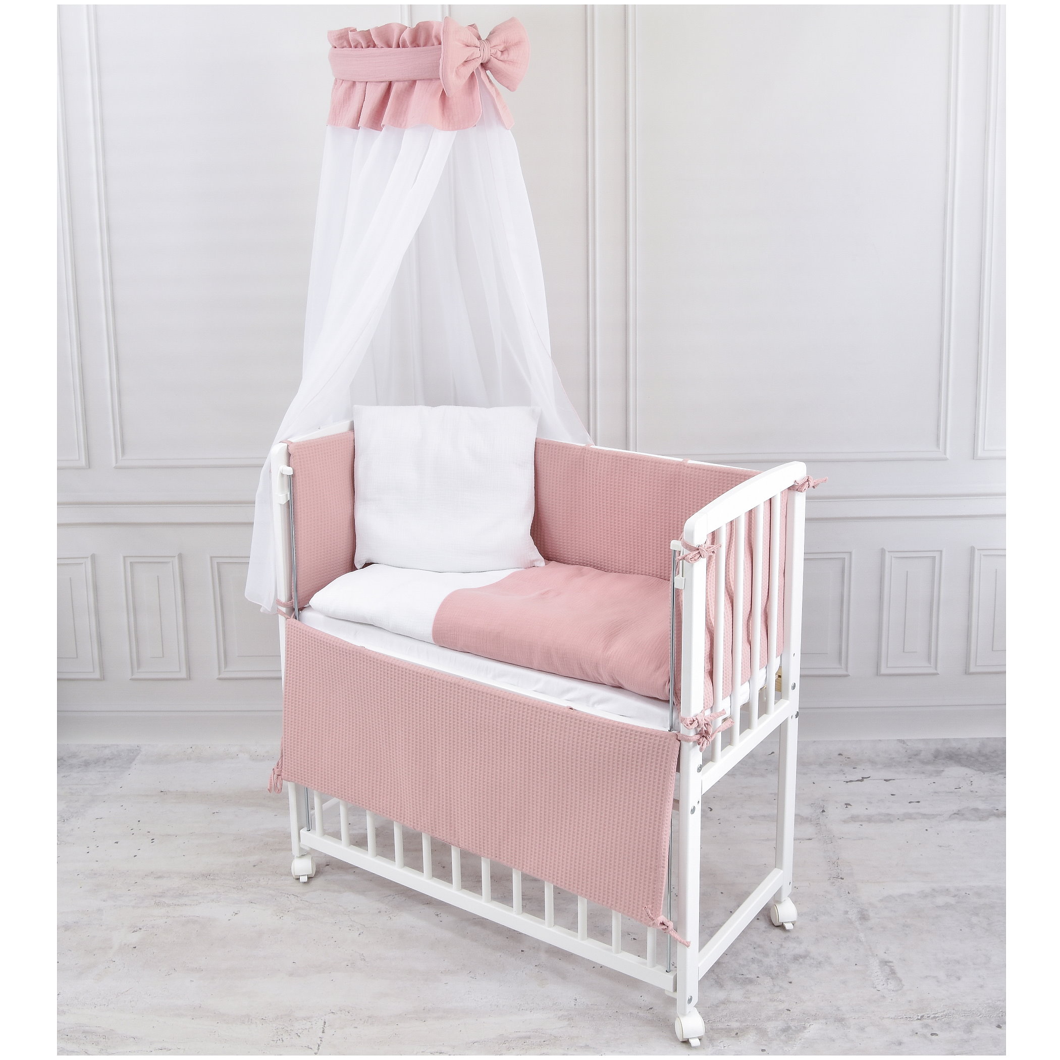 Baby Beistellbett Komplett Set Rosa Musselin Waffelpique – Sicherer Schlafplatz für Ihr Neugeborenes