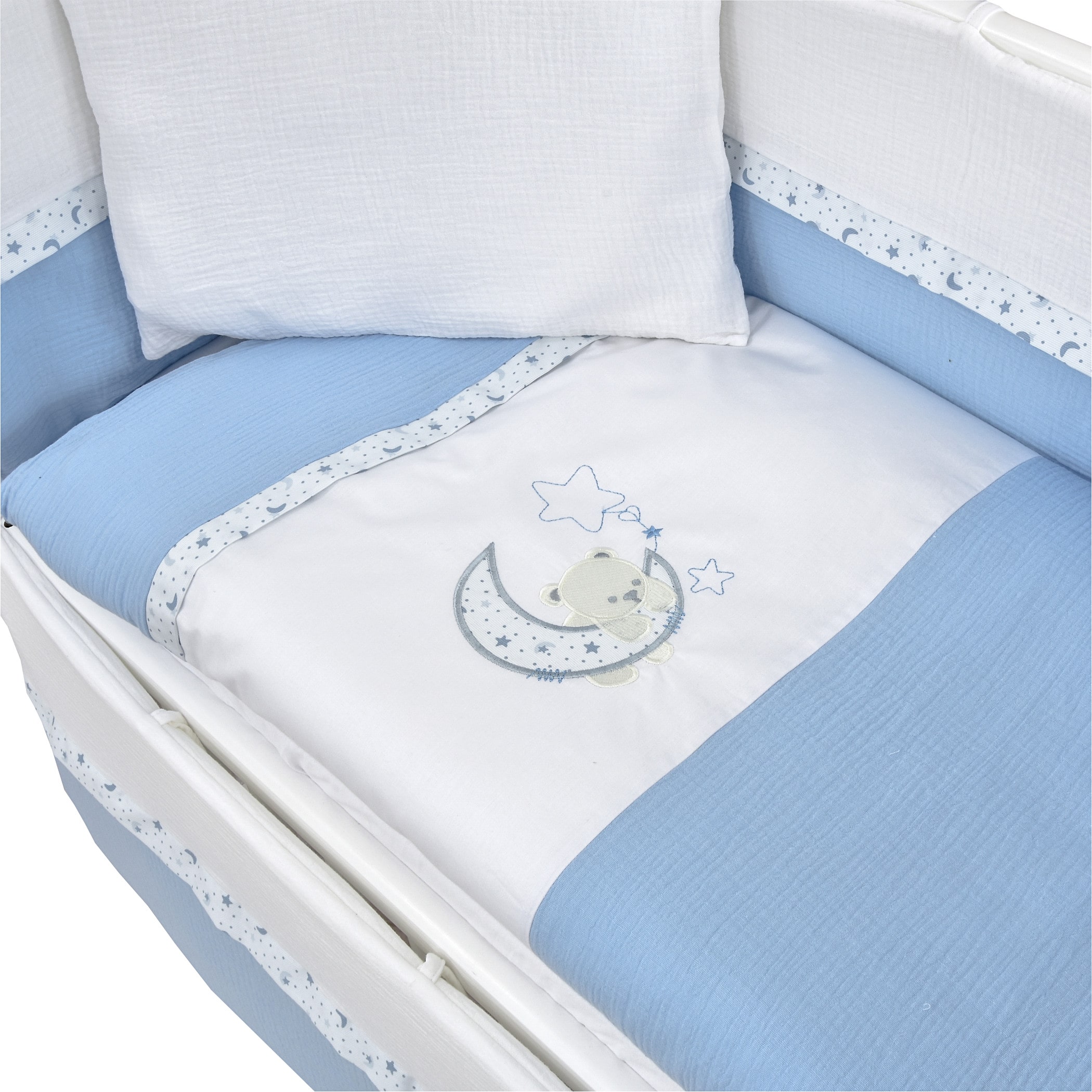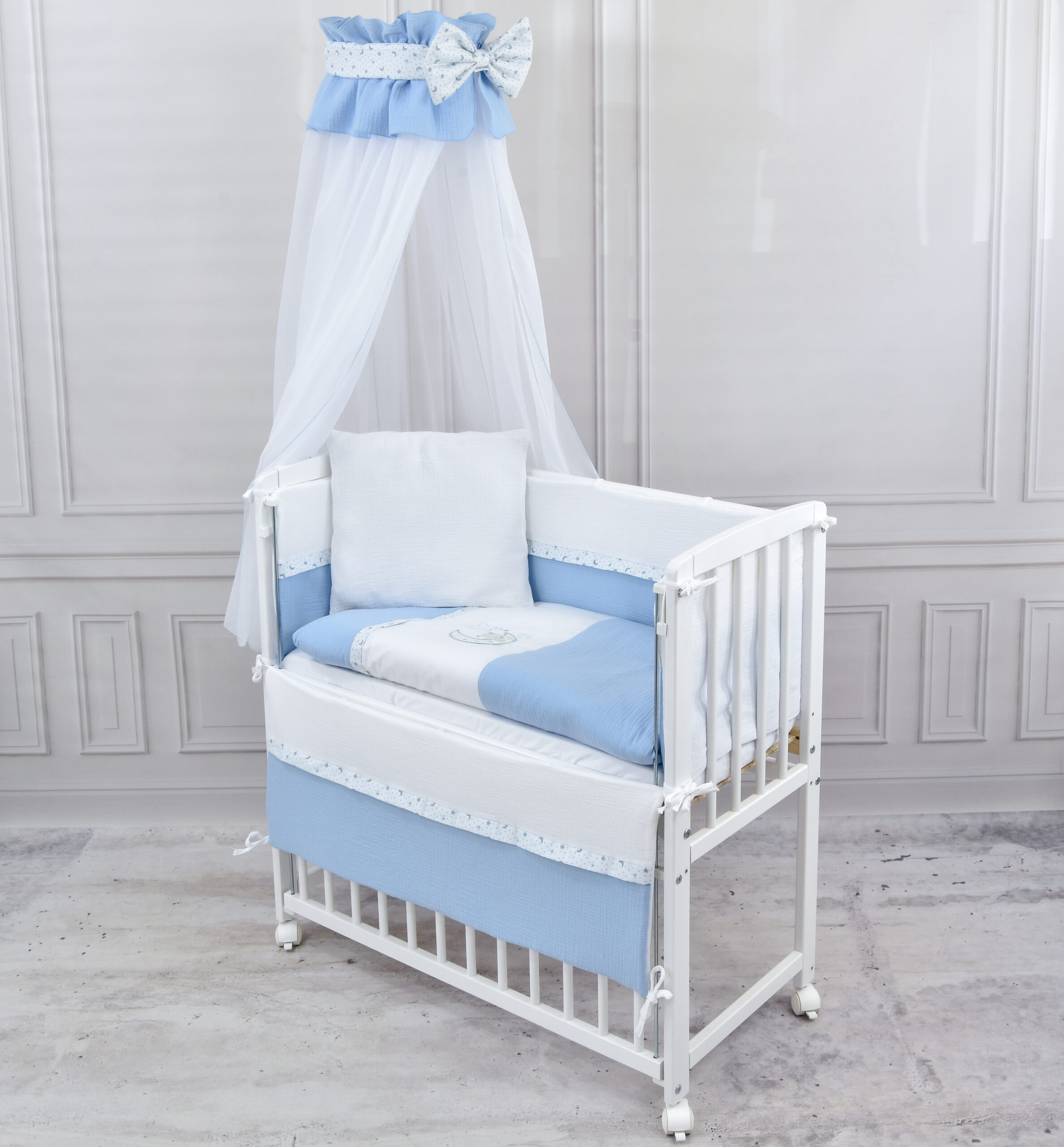 Baby Beistellbett Komplett Set Teddy blau Musselin – Sicherer Schlafplatz für Ihr Neugeborenes