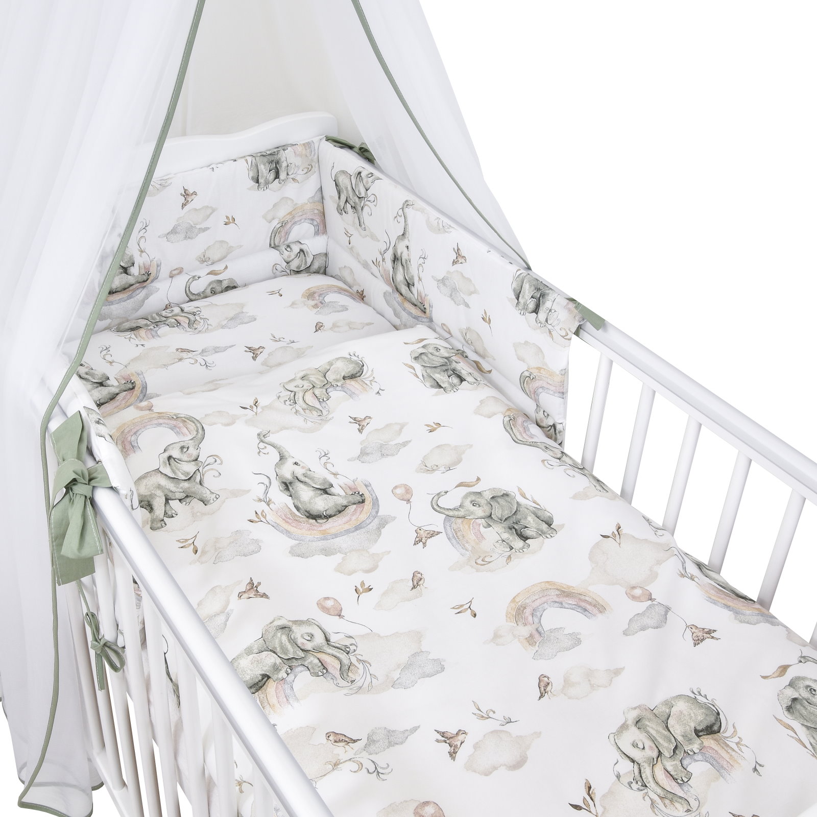 Tauchen Sie ein in die zauberhafte Welt des Schlafs mit unserem exklusiven 4-8-teiligen Bettwäsche-Set „Elefant“. Dieses Set bietet nicht nur höchsten Komfort, sondern auch ein märchenhaftes Ambiente für Ihr Babyzimmer.