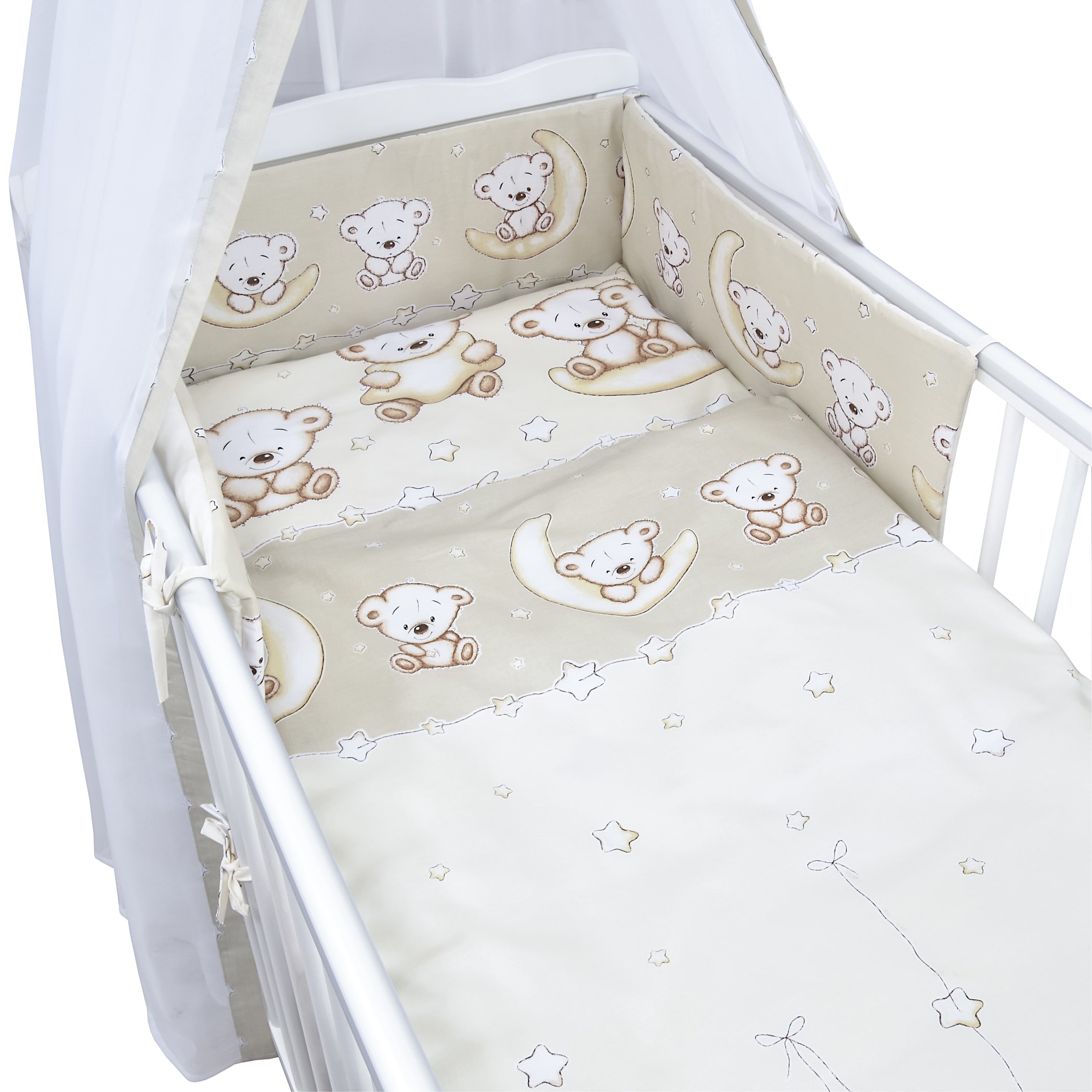 Tauchen Sie ein in die zauberhafte Welt des Schlafs mit unserem exklusiven 4-8-teiligen Bettwäsche-Set „Teddy Mond beige“. Dieses Set bietet nicht nur höchsten Komfort, sondern auch ein märchenhaftes Ambiente für Ihr Babyzimmer.