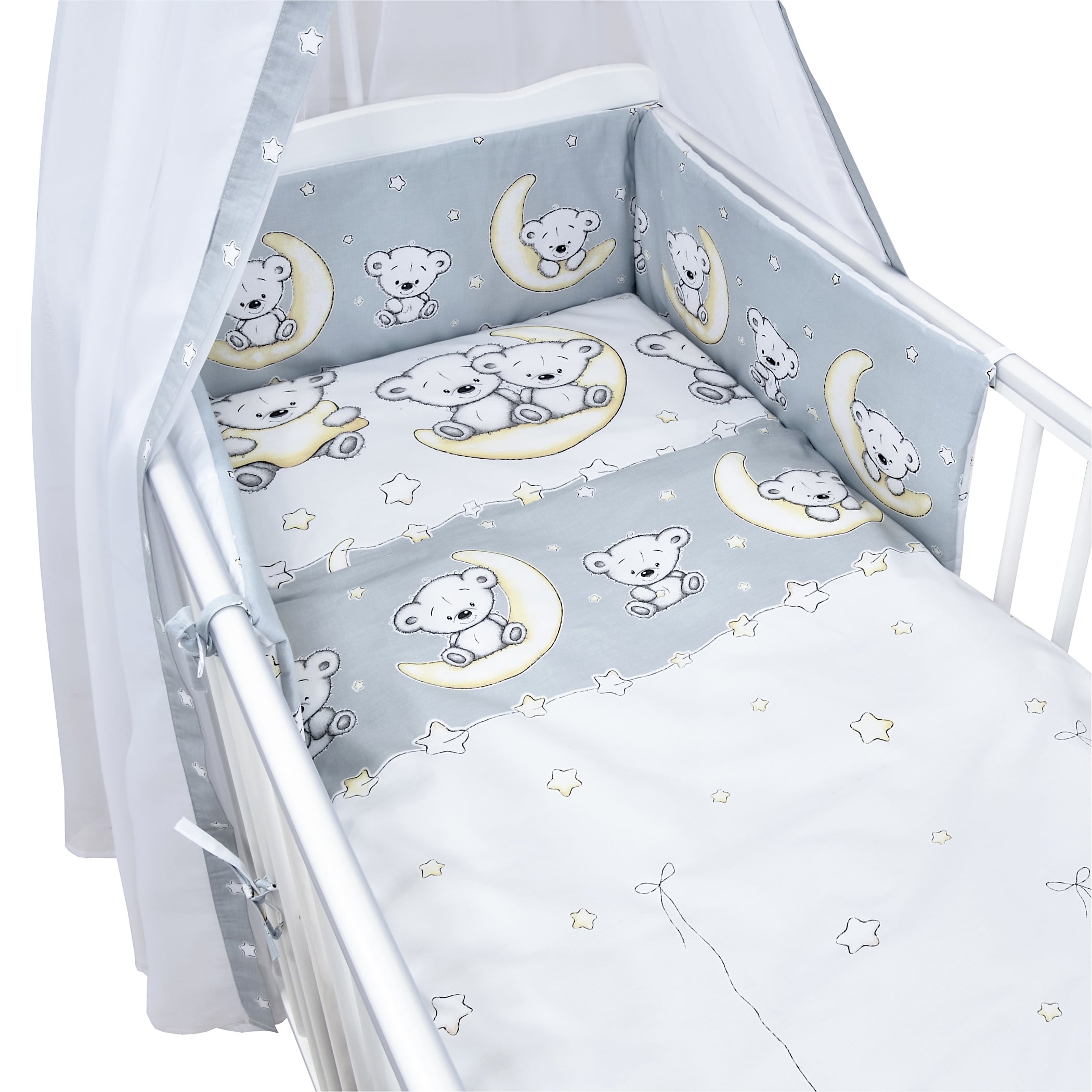 Tauchen Sie ein in die zauberhafte Welt des Schlafs mit unserem exklusiven 4-8-teiligen Bettwäsche-Set „Teddy Mond grau“. Dieses Set bietet nicht nur höchsten Komfort, sondern auch ein märchenhaftes Ambiente für Ihr Babyzimmer.