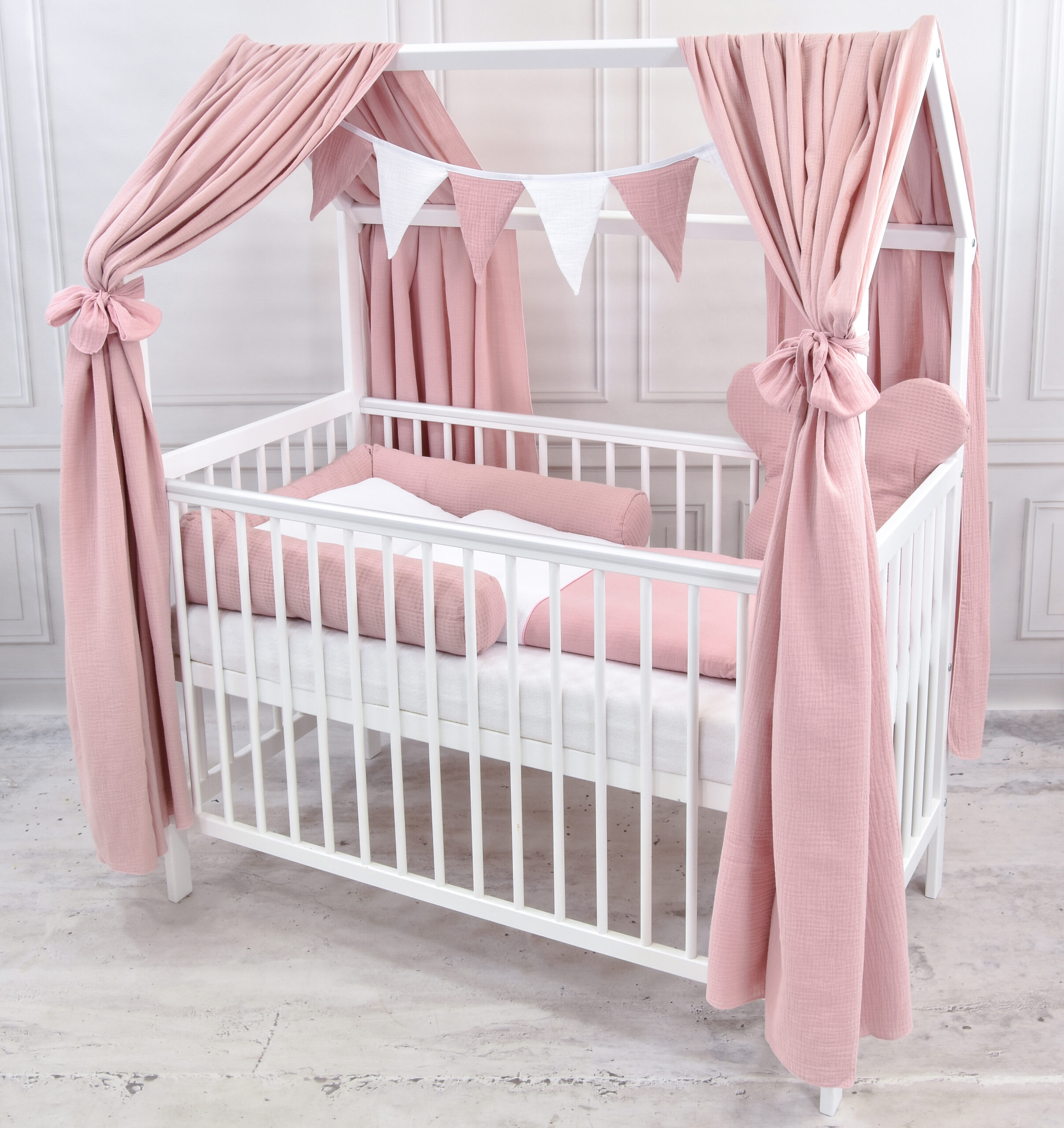 Bettwäsche Deko Set für Hausbett Rosa Musselin Waffelpique