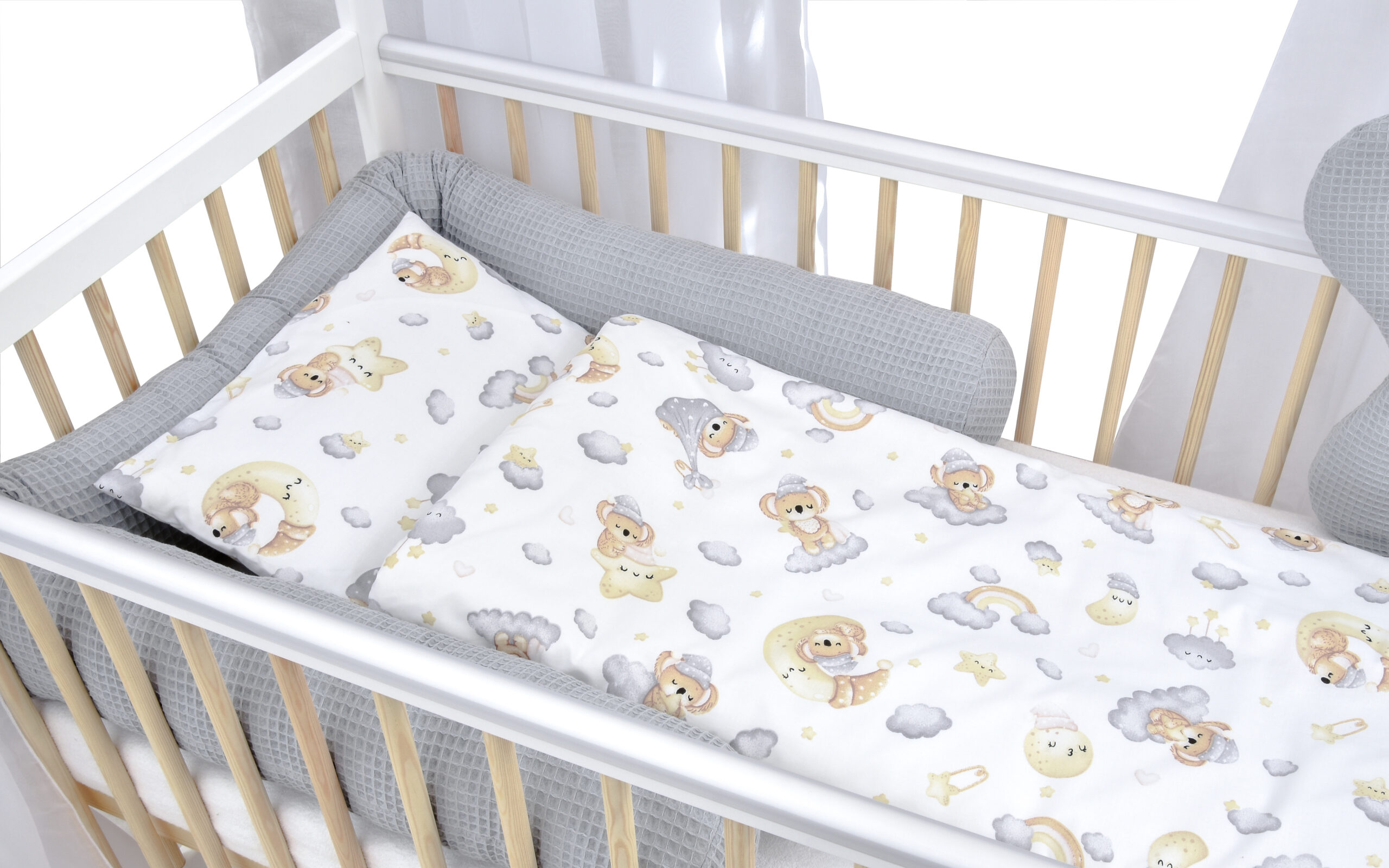 Komplettbett Babybett Hausbett 120×60 cm Weiß Kiefer dekoratives Bettwäsche Set Koala