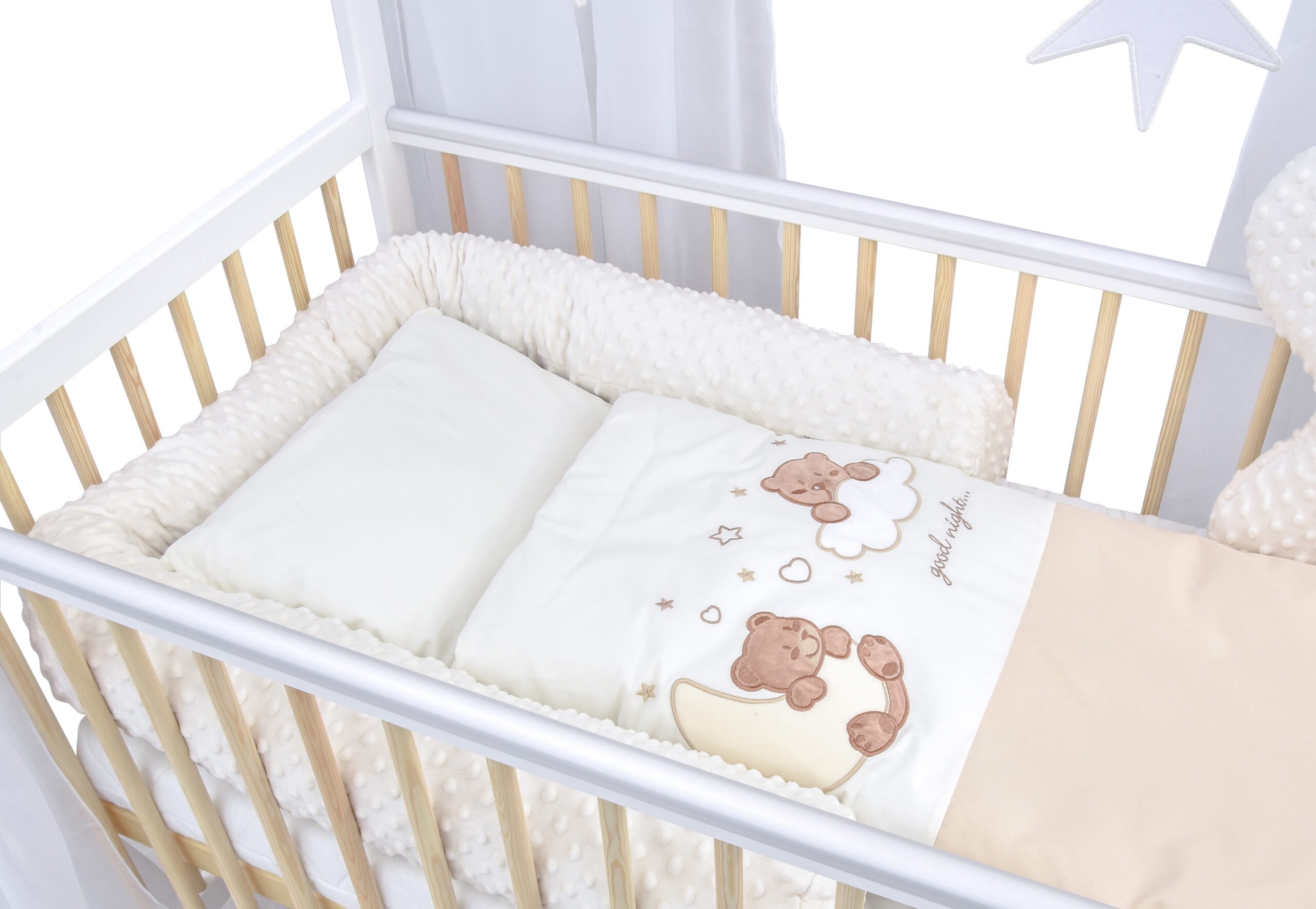 Besonders liebevoll gestaltet sind die Beißschienen, die nicht nur das empfindliche Zahnfleisch Ihres Babys schützen, sondern auch das Bett vor möglichen unschönen Abnutzungsspuren bewahren.
