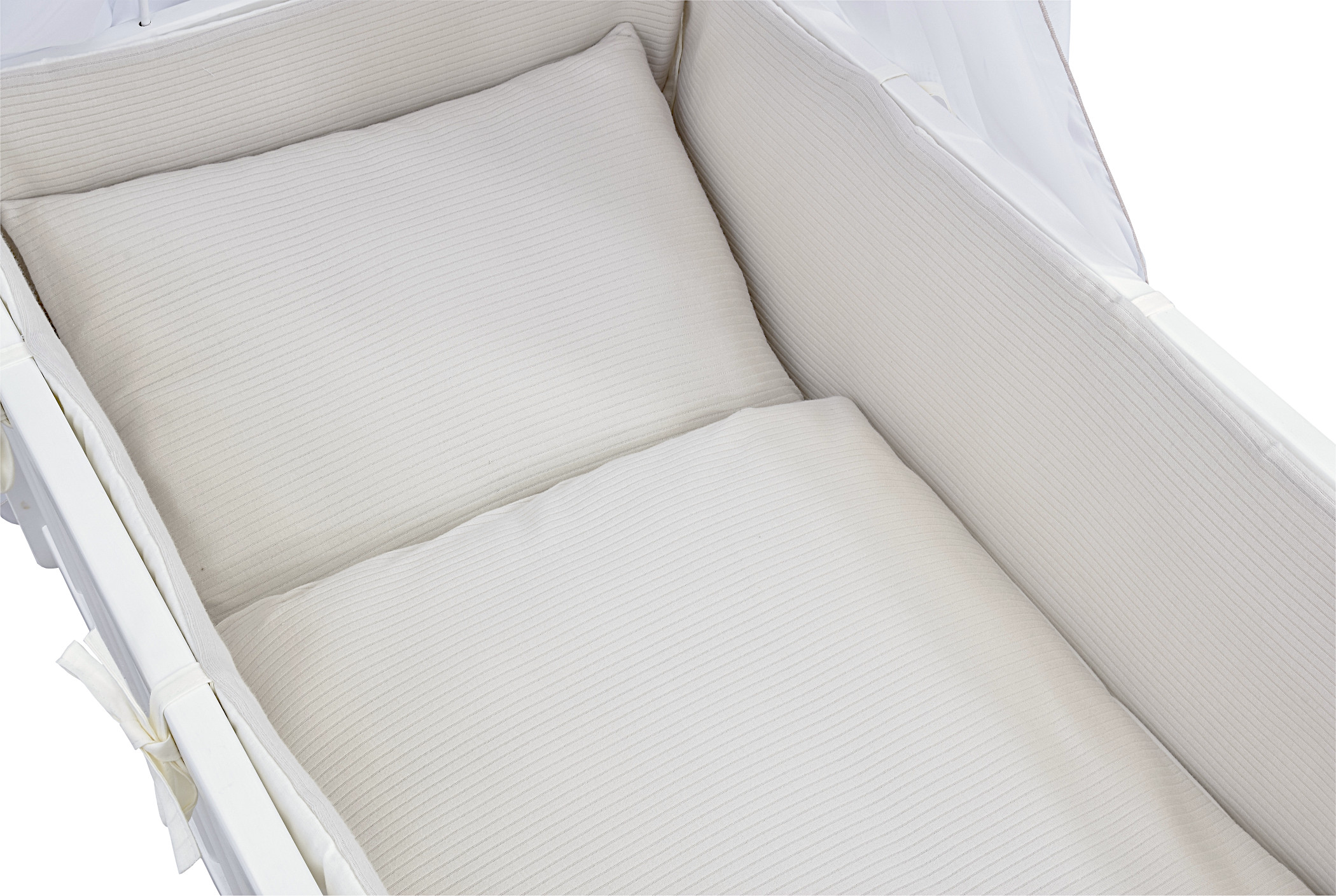 Dieses Bettwäscheset für Babywiegen vereint Funktionalität mit stilvoller Optik – ein Muss für jede liebevoll eingerichtete Babywiege.