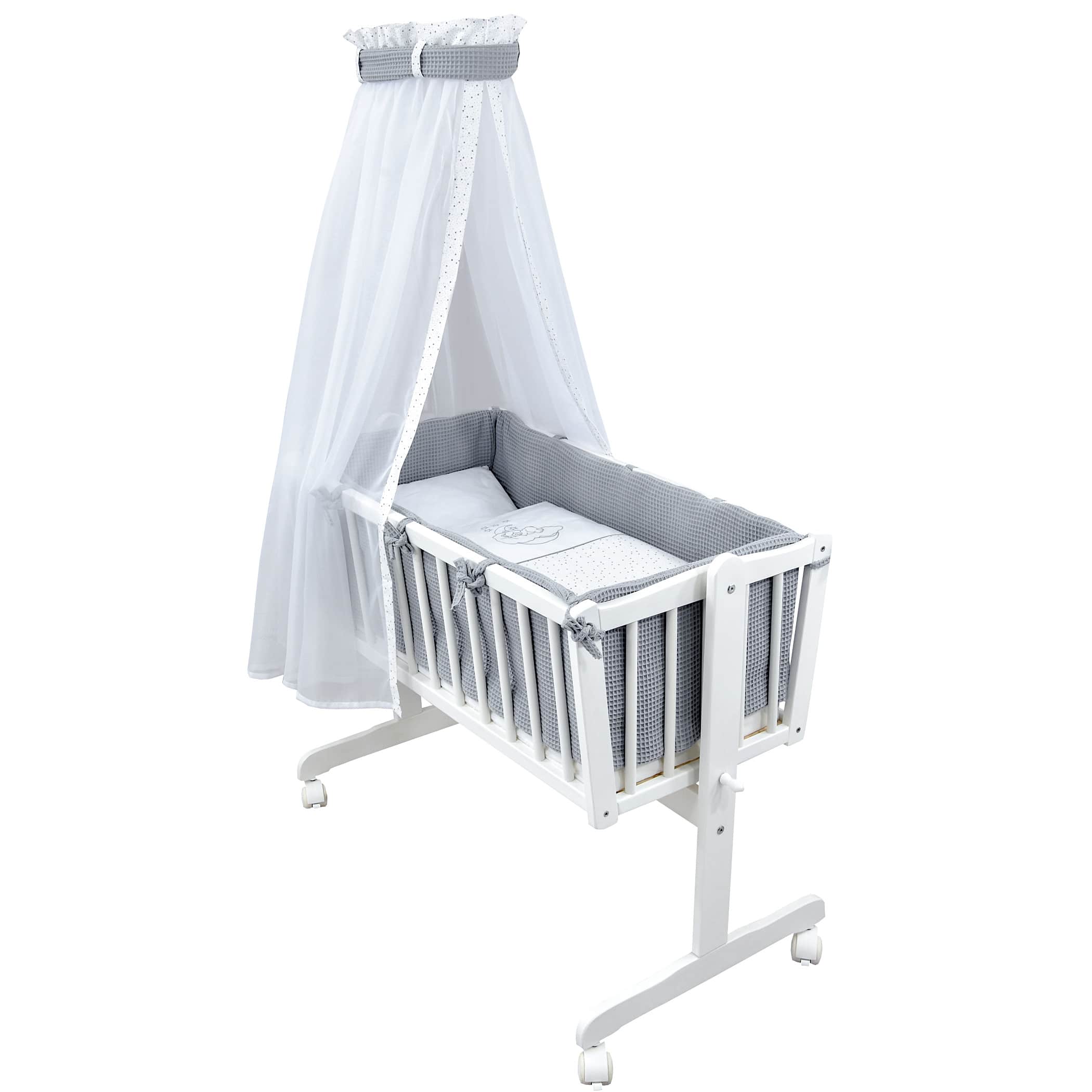 Sanfte Träume von Anfang an – 6-teiliges Wiegenset für Babywiegen im Design Sternchen grau Waffelpique